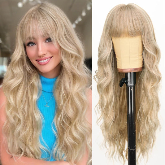 Long Wavy Synthetic Wig with Bangs