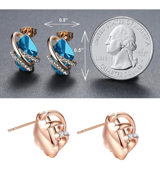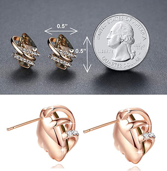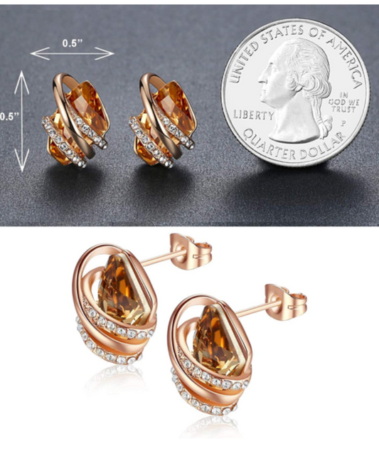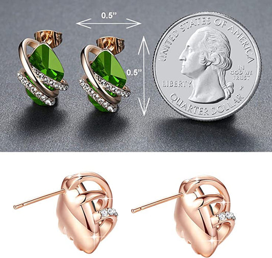 18K Rose Gold Birthstone Crystals Stud Earrings