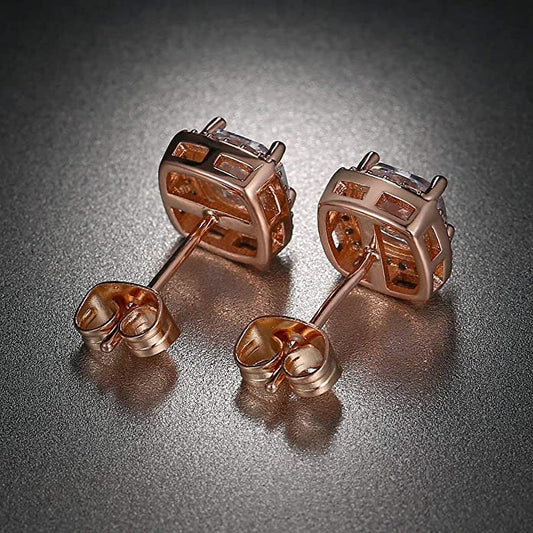 18K Rose Gold Plated Diamond Halo Stud Earrings