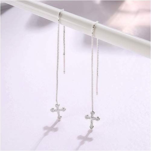 925 Sterling Silver Ear Line Cross Threader Drop Earrings
