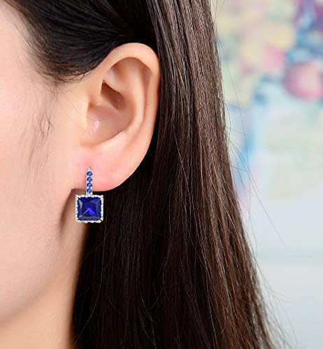 Blue Sapphire Princess Cut 925 Silver Earrings for Women