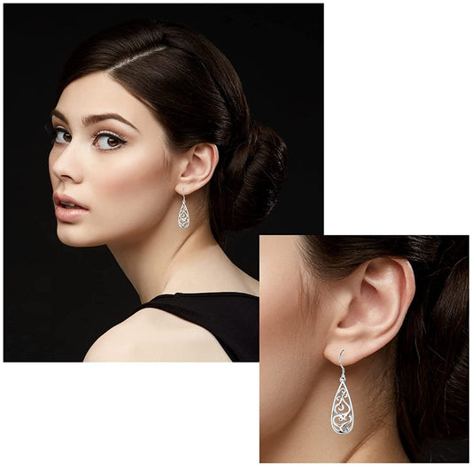 925 Sterling Silver Earrings, Filigree Teardrop Earrings