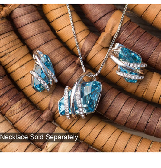 Aquamarine Blue Silver Crystal Earrings