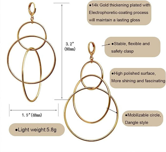 3 Serial Circle Dangle Earrings