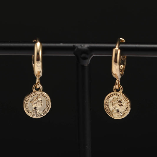 18K Gold Coin Dangle Earrings for Women