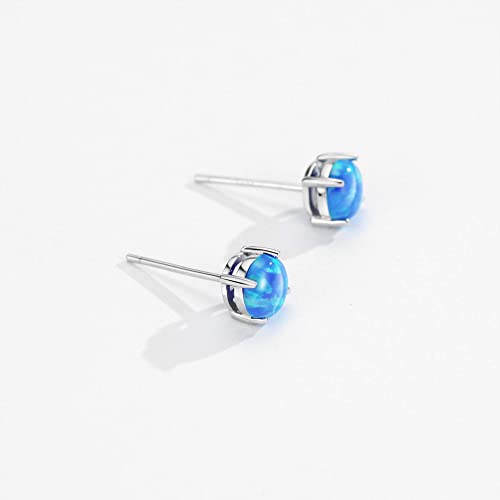 925 Sterling Silver Blue Opal Stud Earrings