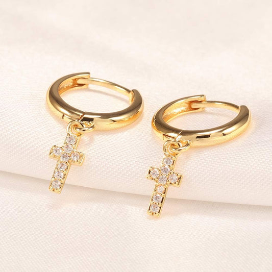 Cross CZ 18K Gold Plated Huggie Small Hoop Earrings