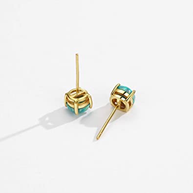 18K Gold Plated Earrings - Opal Solitaire Gemstone Earrings