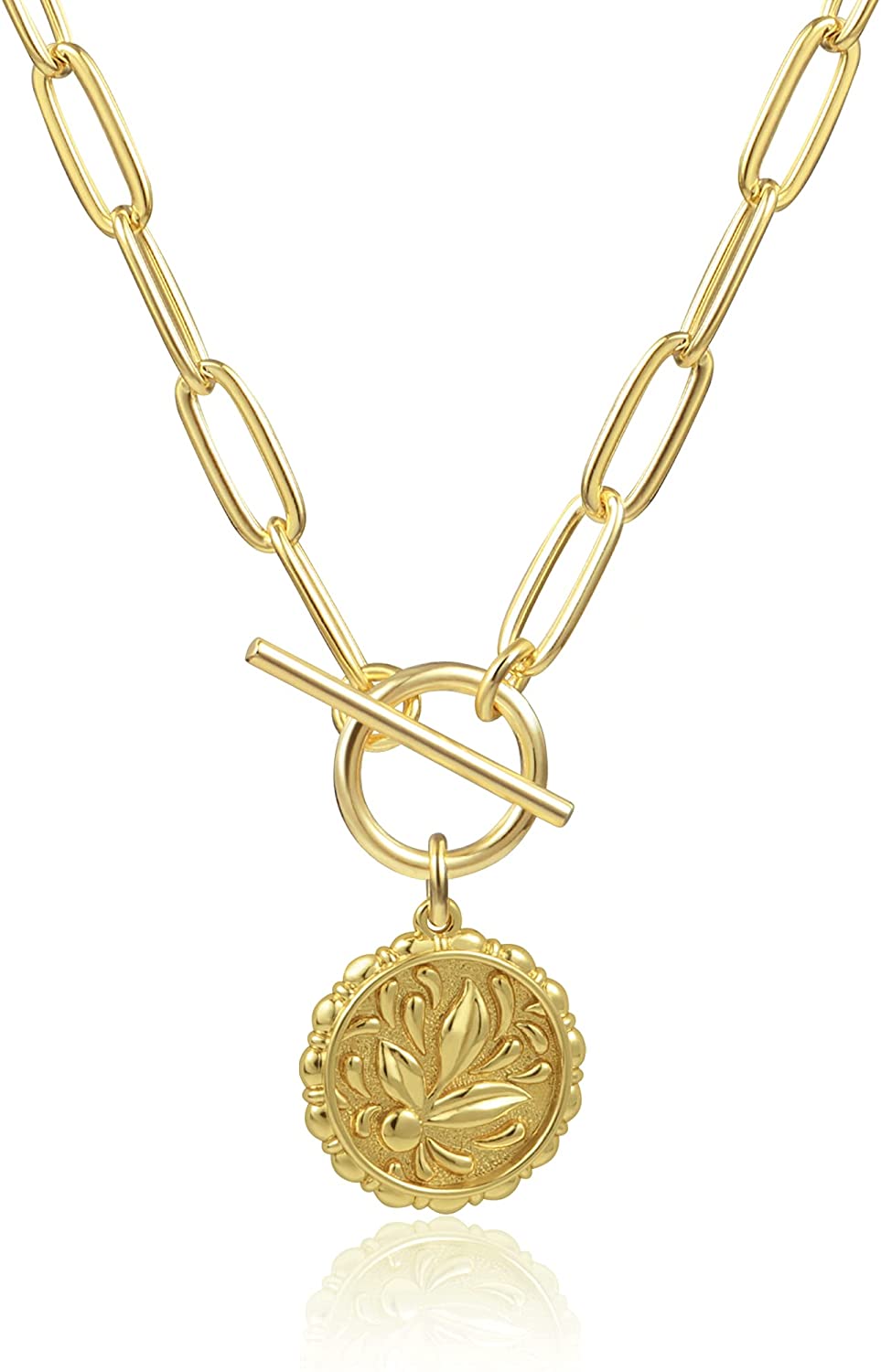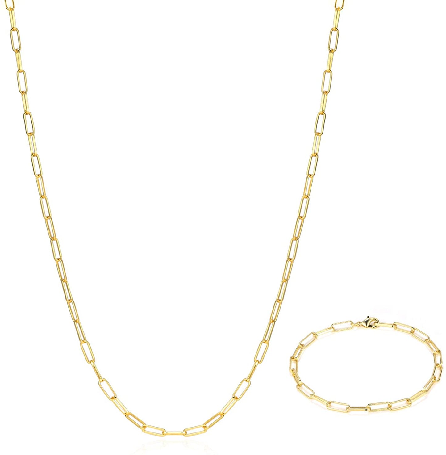 - 14K gold tone as show in picture, it is a minimalist necklace consists of a gold-plated Paperclip chain.