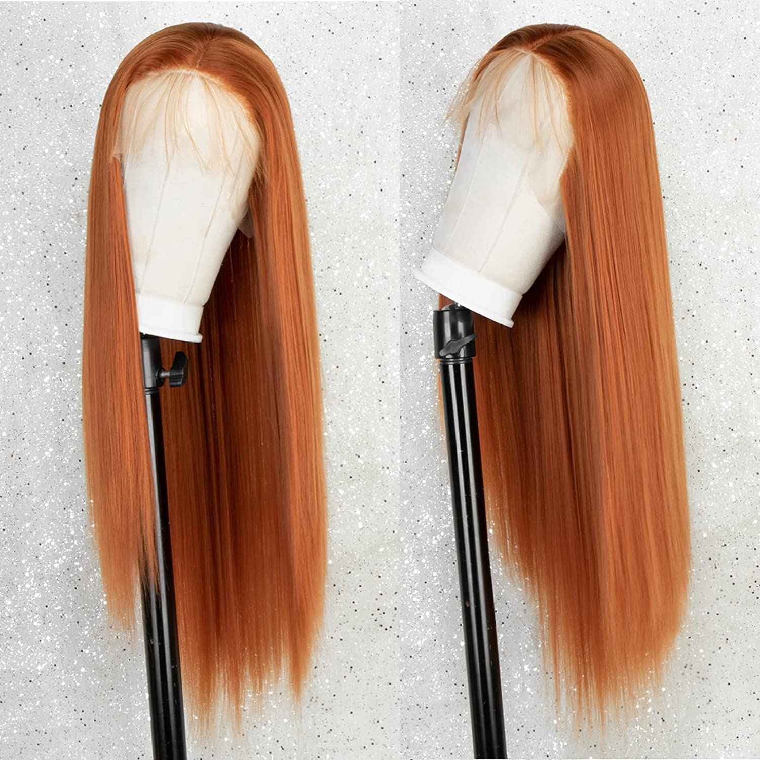 22inch Orange Long Straight Lace Front Wig For Women DragQueen