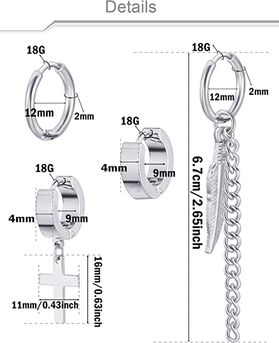 Bar Bell:8mm;4 pairs variety of style Stud earrings in one set,