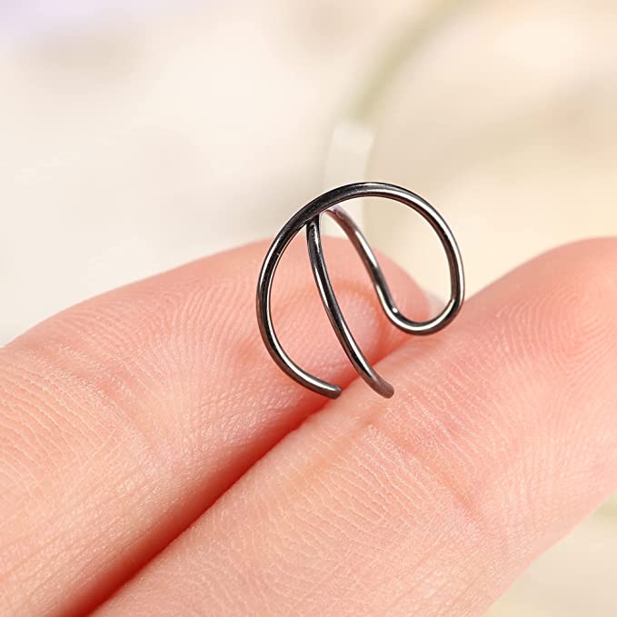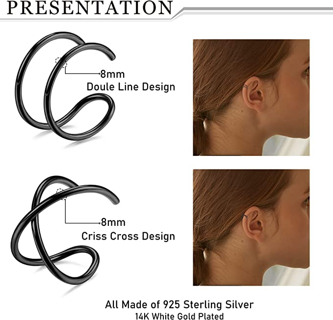 4Pcs Silver Cuff Cartilage Earrings-Black