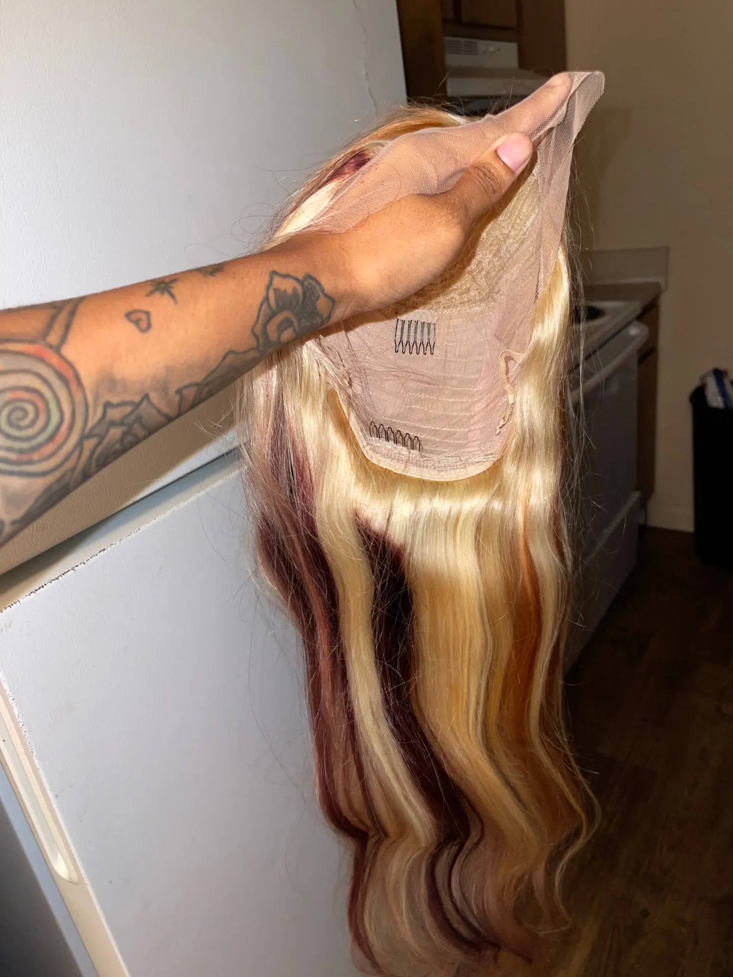 Highlight 613 Brown Blonde Colored Human Hair Wig
