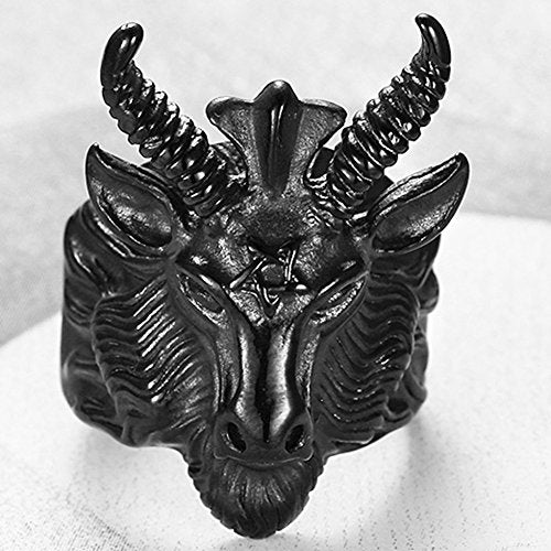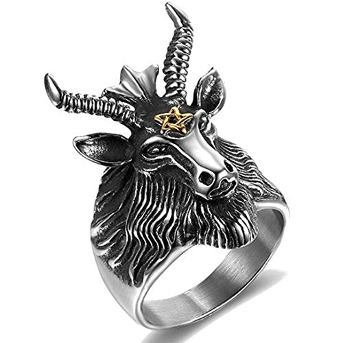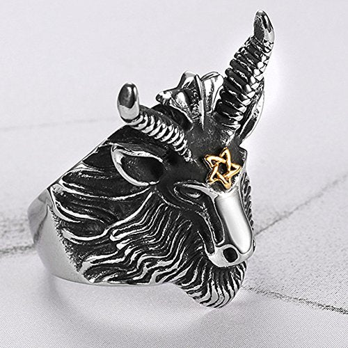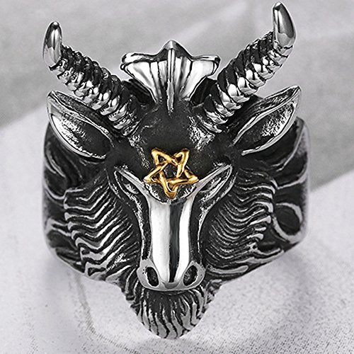 - Stainless Steel Baphomet Satan Ram Head Biker Ring