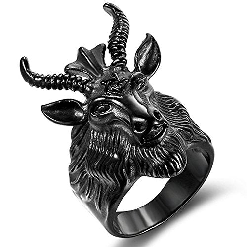 Stainless Steel Satan Ram Goat Head Gothic Rings
