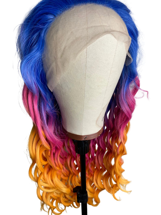 Impressive color blend; the highlights look professionally done for synthetic hair.