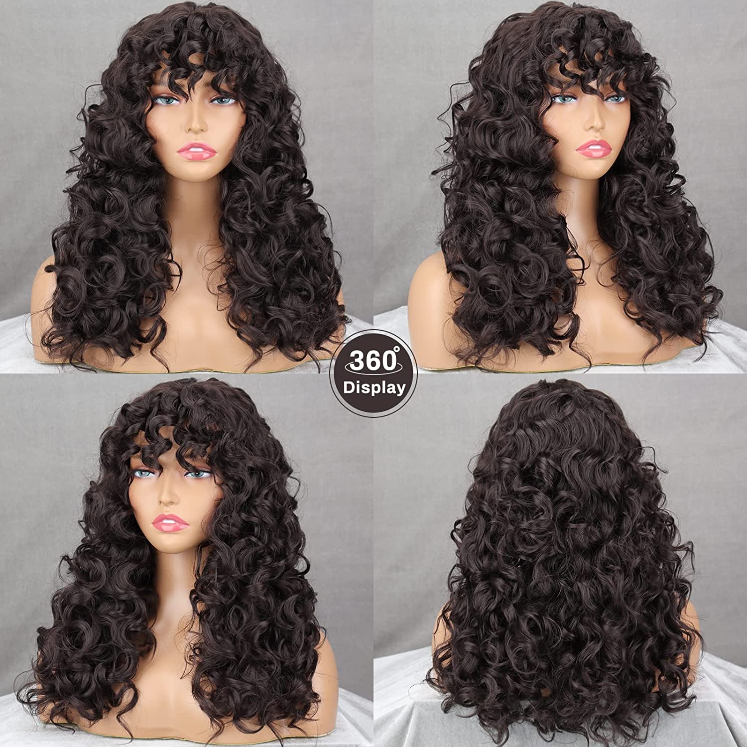 Curly wig with bangs have a very stylish design and a soft feel.You can wear it at parties or daily use curly afro wig.